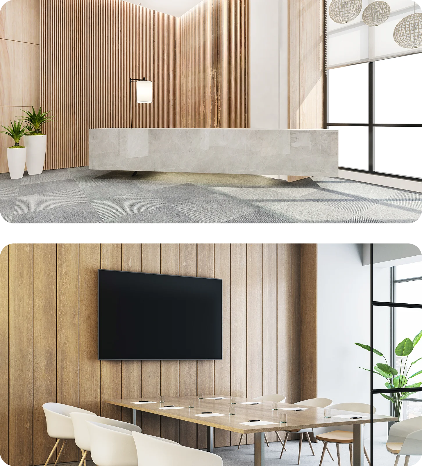 Finitions bois, pierre, béton, métal. Idéal pour les murs d’hôtels, restaurants, bureaux et espaces résidentiels.
